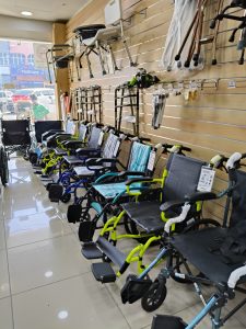 Kerusi roda atau tongkat (jika perlu)