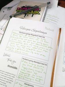 3. Tetapkan waktu khusus untuk menulis – Pada saya, saya lebih selesa menulis pada waktu awal pagi atau kadang-kadang lewat malam. Jika saya menulis waktu pagi, saya akan recall balik apa yang terjadi semalam. Mungkin sedikit ambil masa sebab kita terlupa tapi jika itu yang memudahkan kita untuk menulis dan mencatat, silakan aje.