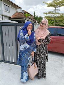 Bila mereka dah nak habis makan dan nak balik, tetiba dengar adik ipar cakap nak jumpa member sparring saya kat luar rumah sebab dia wasap nak jumpa (Oh ya, masa saya sibuk di dapur masak butter chicken, saya dengar orang gelak kuat kat depan. Tertanya gak hati. Rupanya adik ipar saya senior member sparring saya ni kat sekolah di Ipoh. Dah memanjang jadinya silaturrahim keluarga kami). Apa lagi, settle aje member adik kakak ni makan, kami keluar rumah. Makin meriah kami berempat berborak kejap. So, saya appreciate sangat momen ni jadinya saya minta adik saya snap gambar untuk kenangan. Kita tak tahu siapa akan dijemput dahulu, jadi gambar itulah kenangan yang ada untuk dikenang dan dihargai.